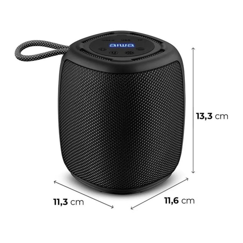 A AIWA AWS-SP-03-B é uma caixa de som portátil potente, resistente e moderna, ideal para quem busca qualidade sonora, estilo e praticidade no dia a dia. Com 15W RMS de potência, design com revestimento em tecido e alça de transporte, é perfeita para uso em ambientes internos ou ao ar livre.